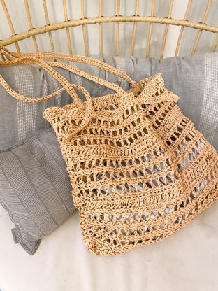 Get ready for your next tropical vacation, your next yoga class, a girl’s trip, or simply a trip to the grocery store with this oversized, eco-friendly raffia tote bag crochet pattern! Raffia ribbon is a unique fiber to work with and adds variety to your hobby. You’re sure to get many compliments when toting this stylish bag around!