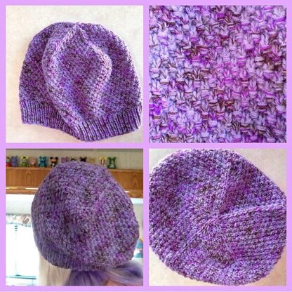 Seed Stitch Slouch is a great hat to throw on when you want to hide your hair. It has lots of room without being bulky and the decreases form a simple star shape that shows nicely against the seed stitch.