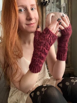 The Seeds of Grain mitts have little buds (bobbles) and a leaf-like structure inspired by the Goddess of flowers and grain