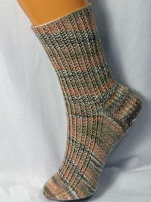 These stretchy ribbed socks are knit in a simple but unique twisted seeded rib. Perfect for showing off those variegated yarns or for knitting on the bus!