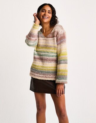 The relaxed, easy knit Set-In-Stone Sweater in Sirdar Jewelspun With Wool is perfect for beginners to start their knitting journey, featuring a simple stocking stitch fabric with a narrow one-by-one rib around the neckline. Semi-set-in sleeves and deep, straight, one-by-one ribs at the cuffs and split-seamed hem create a flattering boxy shape which works as well with tailored trousers as with a neat skirt.