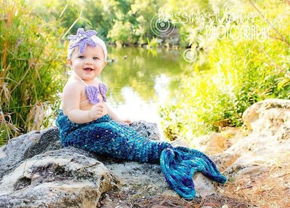 Includes: Mermaid Tail pattern, Sea Shell Bikini Top pattern, and Headband pattern (with flower or anemone).