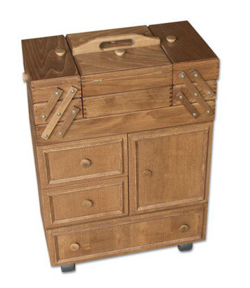 Made from beech wood, this ultimate cabinet for needlecraft features a three-tier cantilever style storage system, hinged lid, wheels for easy positioning, three drawers, one cupboard - all presented in this stylish cabinet.
