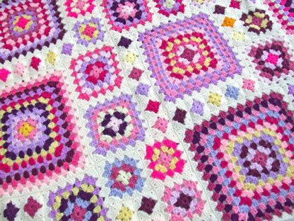 A shabby chic granny square throw perfect for your favourite cosy chair or picnics!
