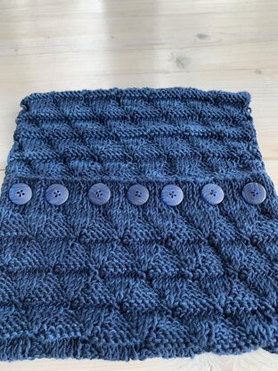 The buttons allow you to style this multiple ways, and if you want to give your cowl a twist or fold the top down, go right ahead! The shadow diamond stitch pattern is reversible, so the “wrong side” is just as pretty as the right side.