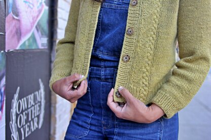 Shandy is a delicate cardigan with a lovely cable and scallop detail, designed to showcase a delicate heather or wool fiber. The balance of simple scallops next to bold braids make a gorgeous texture that really manages to both stand out AND remain subtle at the same time.