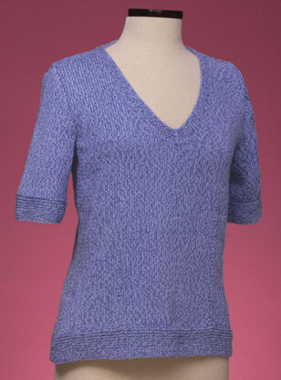 This pullover is worked from the bottom up in pieces, with waist and bust shaping, then sewn together.