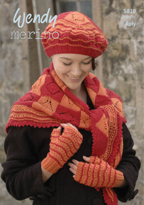 Shawl, Beret and Handwarmers in Wendy Merino 4 Ply - 5810 is a Knitting pattern by Wendy, available as a Leaflet and includes instructions in English. Super fun to make, this pattern could be your next masterpiece!
