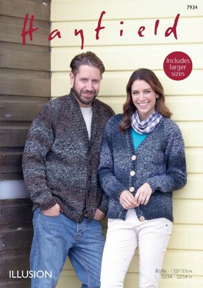 Shawl Collar and V Neck Cardigans in Hayfield Illusion - 7934 - Downloadable PDF is a Intermediate Knitting pattern by Hayfield, available as a Downloadable PDF and includes instructions in English. Super fun to make, this pattern could be your next masterpiece!