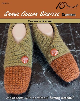 Get the look of knitting from your crochet hook with a pair of sharp, shawl-collared slippers! Sized for men, women and youth, these quick comforts feature a front foot in waistcoast stitch and a contrasting body in slip stitch rib. Best of all? Their clever construction negates the need to sew any seams. You can even choose your preferred look: Single button accents for something stylish or sans buttons for a streamlined silhouette.