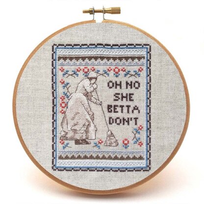 If you've ever caught yourself slaving away on some completely inane task like sweeping up after the kids for what feels like the fifteenth time that day, and think your life has turned into being the perennial fixer/cleaner/etc of everyone else's life, stop and take a breath mama. The She Betta Don't cross stitch pattern is a play on the phrase oh no she betta don't popularized in drag culture, it loosely means oh no she'd better not [do xyz]. Don't beat up on yourself for doing what you need to do for yourself and your family, don't get down or disheartened, and remember that you are a fierce strong woman who rules her world. As the queens would say, You are sickening mamaaaa, aka you are the best and you should be proud of yourself. Keep that head held high, and don't let those daily tasks wear you down. Get out some of those frustrations by stabbing a piece of fabric repeatedly to create the She Betta Don't cross stitch pattern as a daily reminder to stay fierce. Sample stitched over two on Zweigart 28 count Cashel raw linen (Natural). The pattern comes with a full black and white pattern and a full colour pattern.