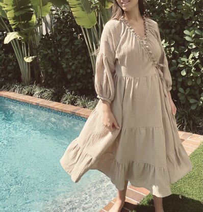 Shea Wrap Dress PDF Sewing pattern (Bump Friendly)\nPrintable PFD pattern for home - A4, A0 and US letter paper sizes included in the PDF - only print what you need!\nSize XS-XL\nMade for KNITS and WOVENS