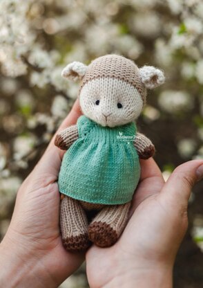 Sheep in a dress knitting pattern. Knitted animal pattern. Stuffed toy tutorial PDF.