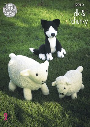 Sheep, Lamb and Sheepdog Toys in King Cole Chunky & DK - 9010 - Downloadable PDF
