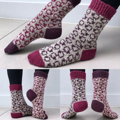 Show your sheepy love! A worthy partner to my popular Sheep Shuffle Mitts pattern, these socks will keep your toes warm while celebrating your love for all things woolly.