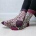 These stranded socks use a fun motif to give impressive results. Starting with a twisted rib cuff, knitting continues down the leg using a simple chart. The toe is closed with Kitchener Stitch, and the afterthought heel uses spaced decreases for a beautiful swirl.