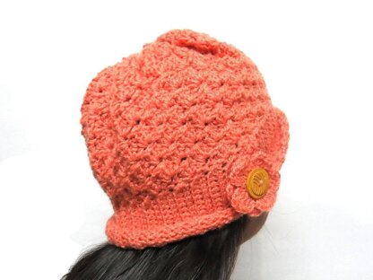 DIY pdf pattern for crochet beanie hat shell design pattern winter fashion accessory The hat is decorated with a pretty and simple to make crocheted flower and a wooden button. Very easy to follow pattern with pictures. There is one 13 page PDF with pictures for ease of understanding. Great gift for her. Beautiful choice for someone special. Simple yet elegant design. The pattern uses acrylic yarn light worsted weight (DK) size 3, 4 mm crochet hook. You can use different colors or shaded or textured or multicolored yarn for a completely different look.