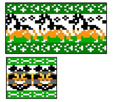 - a 12-stitch Sheltie face from the front with a bone peerie