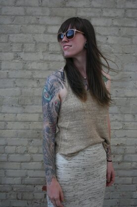 Shelton is a fun and easy summer knit, worked up in light, breezy, comfy OUR yarn. Subtle dart patterned decreases and exposed side seams pair with untrimmed edgings and a curved tail to make this a piece you can dress up or down.
