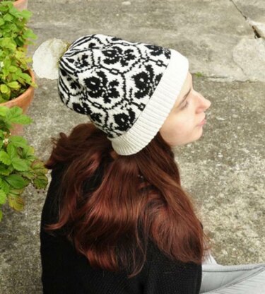 To knit the hat, you will need* *35 grams of black yarn for the hat, 51 grams of white yarn for the hat and 22 grams of white yarn for the pompom if you decide to make it.