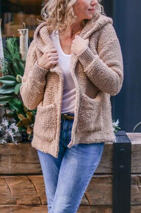 Sherpa or “teddy bear” style fleece is very en vogue and now you can recreate the look with yarn! By using the most basic Tunisian crochet stitch, we’ll make a fabric that looks decidedly not crocheted. Add some crocheted cuffs that appear knit and you’ll have yourself the coziest, snuggliest toss-on cardigan you ever did see.