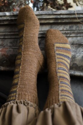 (FRA) Les chaussettes SHIMA sont les dernières de la série SHIMA après le pull, le châle et le bonnet. Sans couture, pas de fils à rentrer aux extrémités de chaque rang, ces chaussettes sont tricotées des orteils vers le haut.