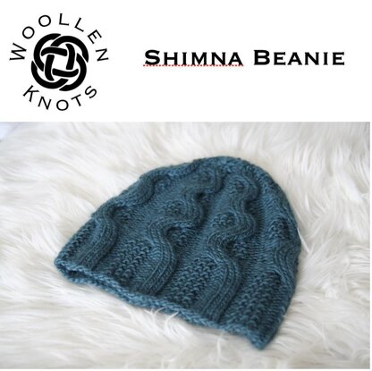The Shimna Beanie is a simple, cosy cable hat. Knit in the round with a deep alternating moss stitch rib pattern and cables that decrease to the crown.