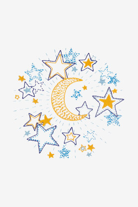 Blinding as the moon itself, this dazzling free embroidery pattern combines gold and blue tones. Thanks to the variety of different stitches that bring this outstanding design to life, this project will be so much fun to do!