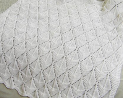 The interesting to work pattern looks like little sail boats and the blanket would be just as pretty in a coloured yarn as it does in white.