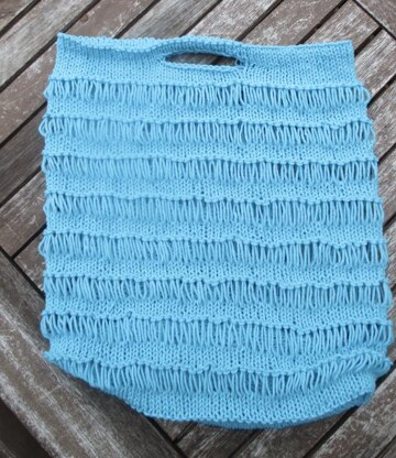 This generously sized shopping bag has enough room to hold plenty of purchases without the handles digging into your hands. The drop stitch pattern makes the fabric stretchy to hold your shopping. Make it in one colour, or use up oddments of cotton yarn by working in stripes for a fun look to your bag. The bag is constructed from the bottom up, starting with a circle formed using Elizabeth Zimmerman’s Pi principle. Once the main body of the bag is completed, the handle is formed and the fabric is turned to the inside to strengthen the top edge of the bag and make the handle comfortable to hold. You can adjust the height of the bag by working fewer pattern repeats if you prefer a shorter bag.