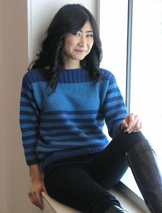 Absolutely simple to knit, this striped, boat-neck, pullover makes a terrific first sweater project. The stripes keep it looking fresh and add a little interest to the knitting, and using a stretch cotton like elann.com Esprit or Cascade Fixation gives it a very comfortable fit and feel. Because of the wonderful give of these yarns, you can choose to knit your project oversized (as modeled) or with little or no ease, for a more fitted look.