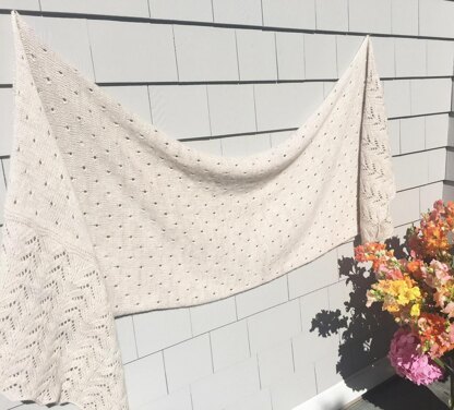 Lace blocks edged in garter stitch rows frame wispy eyelet in this lovely shawl: a perfect complement to everything from jeans to evening dress.