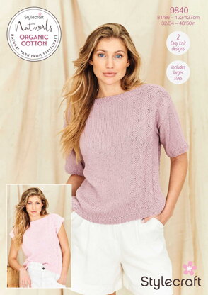 Short sleeve & Sleeveless Tops in Stylecraft Naturals Organic Cotton DK - 9840 - Downloadable PDF