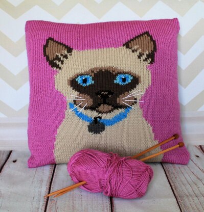 Knitted cushion cover pattern featuring a handsome Siamese cat in a fun pop art style! This can be used to cover a cushion pad, or a box canvas if you’d prefer to display your hard work on the wall and have a unique piece of art!