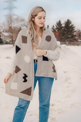 The Sigma Scarf is a worsted weight scarf knit in stockinette with a garter stitch border and a variety of solid shapes floating throughout the fabric. This piece uses the intarsia method of changing colors; a way to work clean color changes without carrying floats in the back of your work. The number of chart repeats is included, although charts can be worked as many times as desired for any scarf length. Fringe or tassels can be added to both short ends to further personalize your scarf.