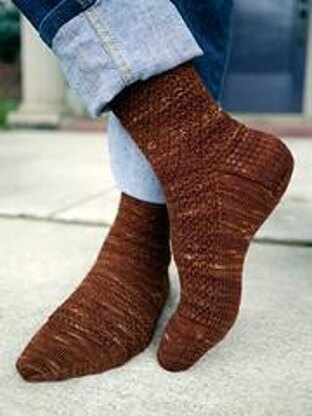A top-down unisex sock in seven sizes (XXS/XS/S/M/L/XL/XXL) with leg and foot in a simple allover tweed stitch. The easy to work knit/purl motif reveals a larger pattern of subtle diamonds as the fabric grows. Pattern can be easily reversed for toe-up construction and provides a sleek tone-on-tone effect in solid or nearly-solid colorways.