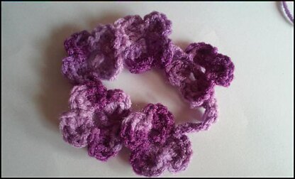 Here is a very simple, easy, quick, and pretty flower bracelet pattern. I created this pattern on the school bus going on a field trip with my daughter. By the end of the field trip there were 10 happy little girls with new bracelets.