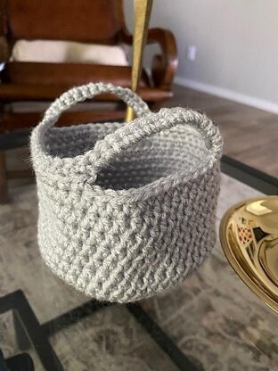 Add soft texture and functionality to your home. This simple basket can be as tall or as short as you like and can be completed with those spare yarn balls. It is worked in the round with simple stitches. Experiment with color changes to make this basket all your own.