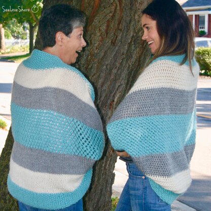 My mom knits and I crochet and we BOTH wanted to make a blanket sweater. So naturally, we turned it into a competition. Whose stitches look better.... who finished it faster.... you name it. We had a blast! But now we don't want to know who won. We're each just claiming the win regardless of the actual results. Enjoy both patterns!