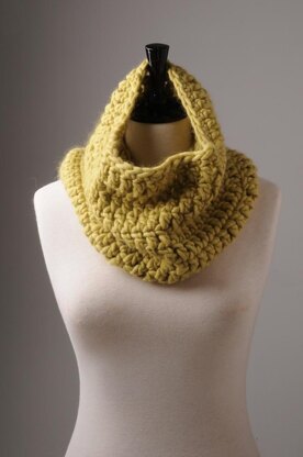 A completely basic, no frills, gorgeous crochet cowl. Suitable for a near beginner. This cowl is crocheted in the round so there is no messy sewing up and it tapers in slightly to keep nice and close to the neck. The pattern 2 skeins of Plump Superchunky.