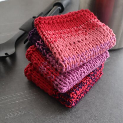 A fun and modern twist on the classic granny’s or farmhouse knit dishcloths, use up your stash or play around with your favorite color blends to knit these up. The yarn is always held double to for sturdy and striking results. Try it in either the bias or classic construction and use two, three, or four colors… or more if your imagination takes you!