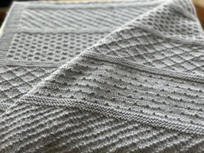 Designing a knit and purl blanket has been as joy! It is amazing how the basic knit and purl stitch can create a beautiful, elegant blanket. Honestly, with 6 different sections, this blanket will fly off you needles and delight many.