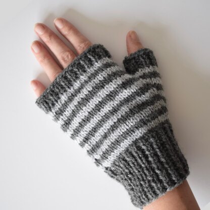 These mittens are knitted flat and designed for knitters who do not enjoy knitting in the round. The striped mitts use 3 stitches: knit, purl, and a make 1 increase. Designed by Amanda Berry @fluffandfuzz, they are knitted in DK weight acrylic yarns (double knitting/light worsted/8 ply) and use less than a 50g skein in each of two yarn shades. For confident beginners and above, other techniques used include seaming, increases and knitting stripes.