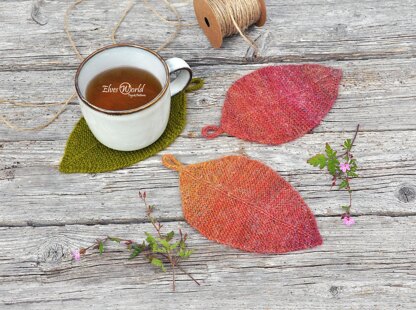 This oval leaf shape can be found in many other species as well. Which kind of leaf you create is up to you: Cherry, Orange, Plum, Alder, American Elm, Beech, Sassafras, Magnolia, Goat Willow, and many more. Rustic holiday decor in beautiful fall colors: ocher, green, brown, burnt orange, and red. You can make a lovely garland as home décor for a seasonal accent. Or maybe you want to knit a leaf coaster or cute bookmark?
