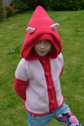 A pony-eared hoodie that's close-fitting, smooth and entirely seamless because it’s knitted in one piece (even the ears). The shoulders and body are gently shaped to suit a child’s body, and to make that gloriously enormous hood sit comfortably. The hood is plenty big enough to be a pony disguise, or flop around like a cape, however you prefer to wear it. Instructions for both zip and buttoned versions given.