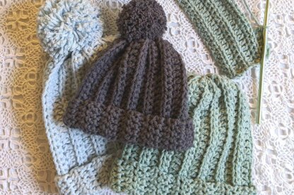 Baby hats are so quick to make and this pattern is an easy textured hat! The pattern has a lovely ribbing and it looks great with or without a pom on top. There are 4 sizes: Newborn, 0-6m, 6-12m, 1-3yrs. You will need one skein of Lion Brand Feels Like Butta. Colors pictured are Charcoal, Sage, and Ice Blue. Also needed is a size I (5.5mm) crochet hook. I find that this yarn is a thinner worsted yarn, so if you are subbing, I suggest another thin worsted such as Caron Simply Soft. Definitely check the gauge for this pattern, as I am a naturally tight crocheter, so you may need a smaller hook size. If you are making a pom for the top, I like to use dental floss or embroidery thread to tighten the pom together. It helps with the little pieces that like to fall out! This pattern includes a detailed photo tutorial to help even the newest crocheters! It is crocheted in a flat piece and seamed to construct the hat.