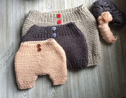 This easy knitting pattern is written with the beginner in mind. It is knit it garter stitch in two pieces. Easily seam up the legs after knitting and you have a cute pair of baby/toddler pants or shorts. The pattern gives you instructions to make shorts/bloomers or long pants. You can easily adjust to the pattern if needed. You will need US 5 and US 6 needles. DK or a light weight worsted yarn.
