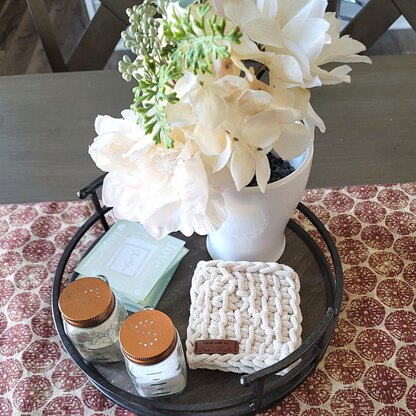 This pattern is for a minimalist Farmhouse style textured Tunisian crochet coaster that can be completed by a beginner! It is made with two simple stitches and the project can be completed in an hour and makes for the perfect stash buster gift idea!!