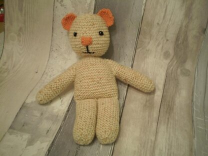 A fun starter knit, this little ted is colourful and full of character! It is knitted in garter stitch throughout and his ears and matching nose are a different colour from the main body.