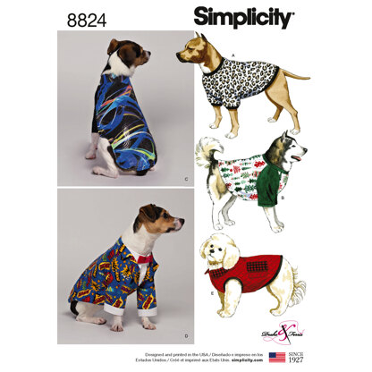 Keep your dog prepared for any weather with these dog coats in sizes small, medium and large. Pattern includes sweatshirt, suit, rash guard, t-shirt and quilted coat. Drake & Ferris for Simplicity.